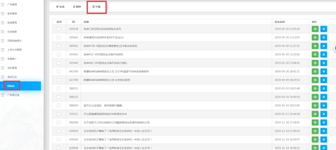 信息誤刪,悔不當初?沒關系,萬家燈火CMS系統回收站上線,再也不用擔心信息刪除后找不回來了。
