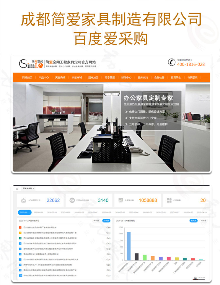 成都簡愛家居制造有限公司,入駐百度愛采購以來,總展現(xiàn)次數(shù)高達105888,近15天內(nèi),展現(xiàn)次數(shù)為22662,點擊數(shù)達到3140次。