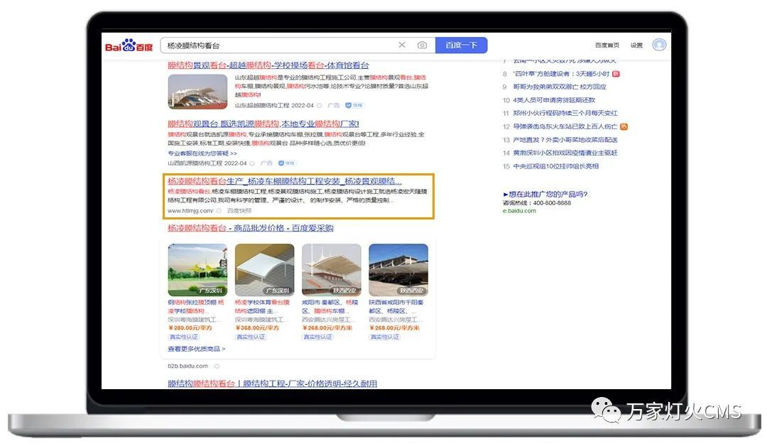 楊凌宏天隆膜結(jié)構(gòu)工程有限公司選擇與萬(wàn)家燈火合作營(yíng)銷(xiāo)型網(wǎng)站——萬(wàn)家燈火CMS系統(tǒng)。網(wǎng)站上線后,不僅拓展了產(chǎn)品銷(xiāo)售渠道,節(jié)省了大量宣傳及運(yùn)營(yíng)成本,還收獲了不少流量訪客。