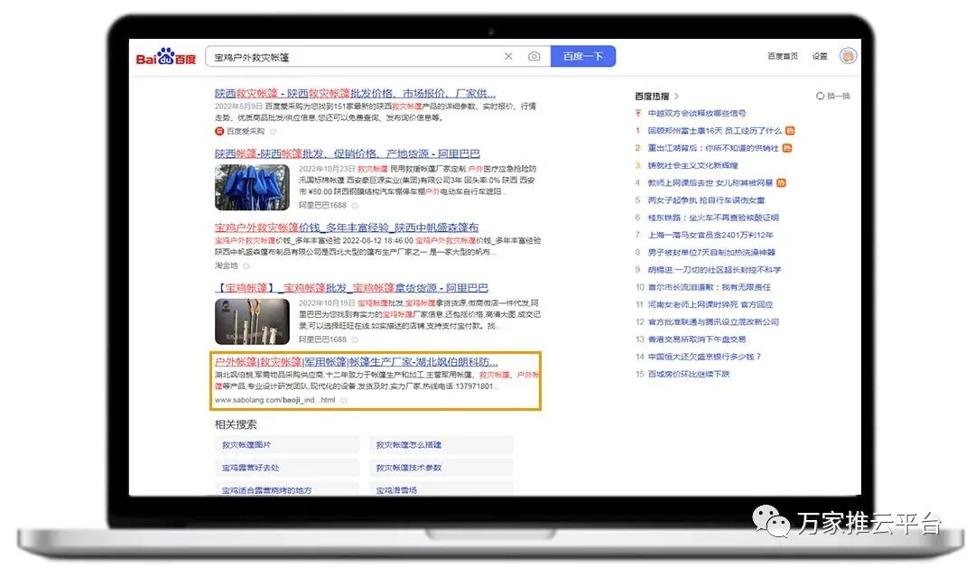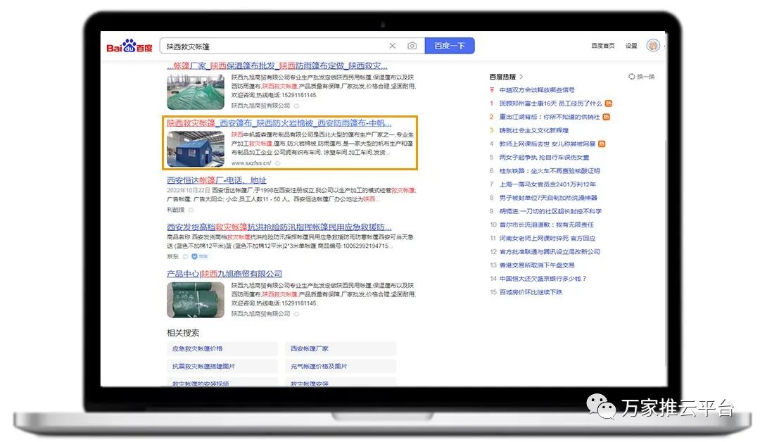 >>>分類信息:寶雞戶外救災帳篷、渭南篷布等關鍵詞均在百度、360等搜索引擎平臺首頁展現。